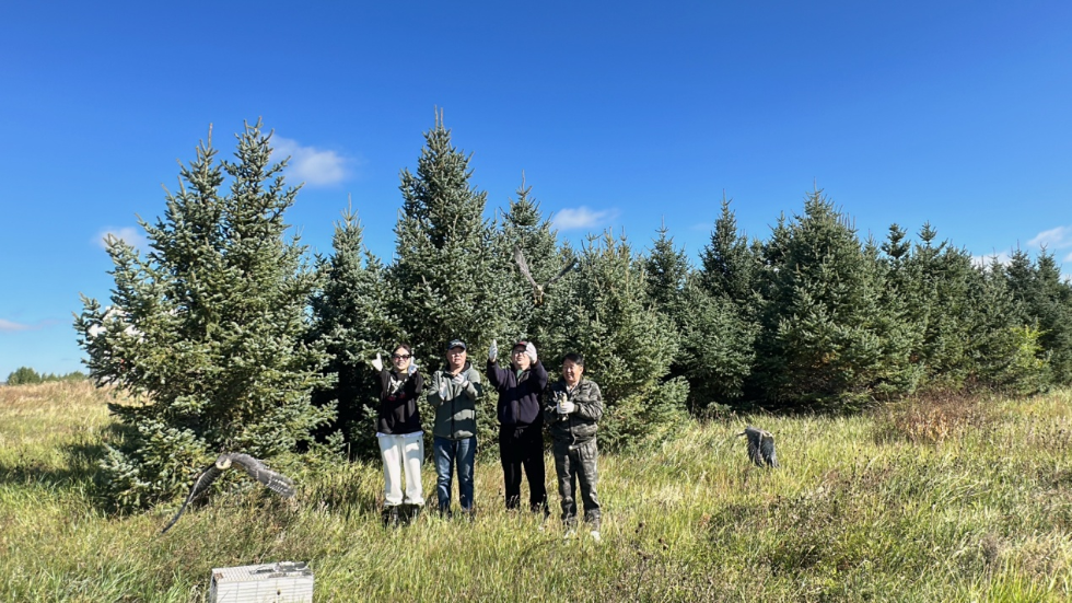 2025年9月17日上午,辉河国家级自然保护区成功放飞今年救助的国家二级保护动物红隼,保护区分管副局长吉雅参加放飞活动,并对冬季鸟舍相关工作进行了全面部署。