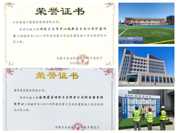 近日,由旗建设和工程质量安全技术服务中心负责监督的呼伦贝尔市中心城新区贝尔小学扩建项目和国网蒙东呼伦贝尔供电公司供电服务指挥中心工程,凭借其在质量管理、安全生产、文明施工等方面的卓越表现,荣获“二0二四年度内蒙古自治区建筑施工安全标准化工地”荣誉称号。