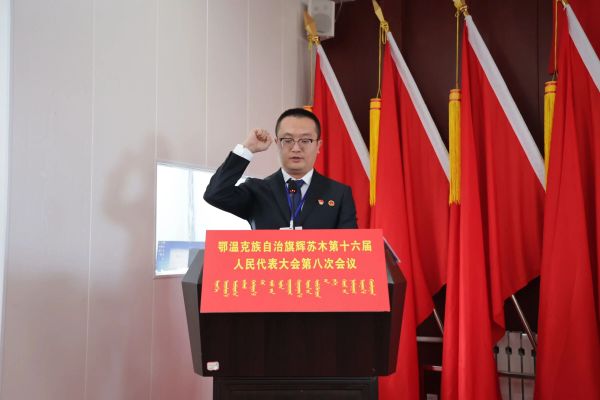 会议期间,全体代表以高度的政治责任感和使命感,认真听取并审议了苏木人民政府《政情通报》《2025年度民生实事项目完成情况的报告》《2025年预算执行情况的报告》及《第十六届人民代表大会第七次会议议案办理情况的报告》。同时,代表们积极履职尽责,围绕基础设施建设、社会民生、基层治理、人居环境整治等方面问题建言献策。对2025年度民生实事项目完成情况进行了满意度测评,以群众评价检验工作实效。并严格依照法定程序,依法选举产生辉苏木人民政府苏木达1名,新当选苏木达阿斯汉面向宪法庄严宣誓,郑重承诺将恪守宪法誓言、忠诚履职尽责、坚守廉洁底线,全心全意为各族群众服务。