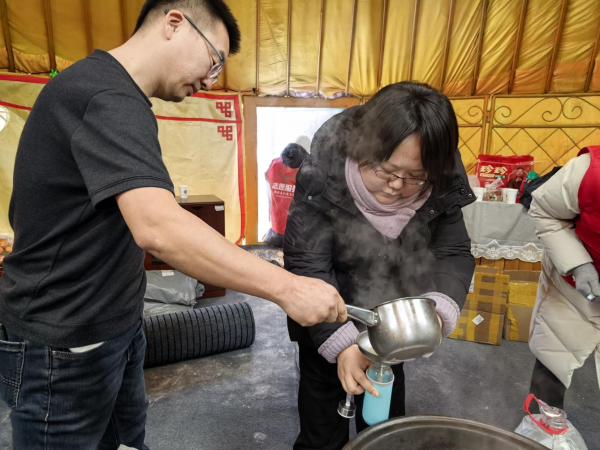 “一碗奶茶暖人心”活动则成为冬日里最动人的暖心亮点,也成为传承民族饮食文化、传递民族团结温情的重要载体。同时,志愿者们动手组装灯笼挂饰,巧手翻飞间,一盏盏喜庆的红灯笼次第成型,一串串寓意吉祥的灯笼便挂满了活动现场。志愿者们向公园里工作人员及游客送上了一杯杯热气腾腾的奶茶和福字贴纸,用“一碗奶茶暖人心”的真诚驱散了冬日的严寒,让互助友爱的暖流在各族群众之间传递。