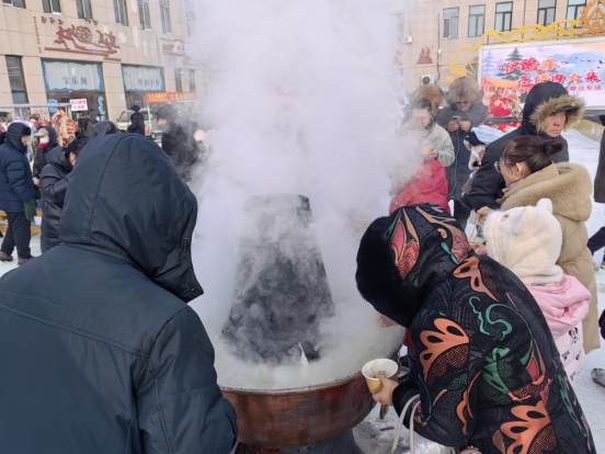 活动现场人头攒动、热闹非凡,60余个摊位依次排开,周边牧户带来的新鲜肉类深得青睐,融入民俗风情的非遗文创颇受欢迎,奶制品、布里亚特包子等特色美食飘香四溢,年货、冻货品类丰富、年味十足。采买选购的群众认真挑选,参与游戏的居民热情高涨,工作人员全程做好服务保障,为群众搭建了便捷、实惠的采购平台,有效激活了乡镇消费市场活力。