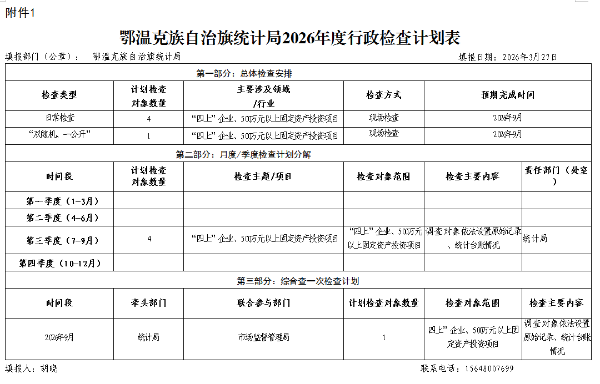 附件1鄂温克族自治旗统计局2026年度行政检查计划表.doc【35 KB】