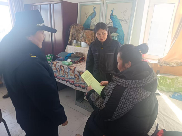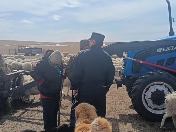 执法队员通过入户走访、发放宣传资料、现场答疑等形式,向牧民详细解读《内蒙古自治区草畜平衡和禁牧休牧条例》《关于2026年鄂温克族自治旗春季休牧的公告》《鄂温克族自治旗关于禁止招揽外地牲畜放牧的公告》等政策法规,并发放蒙汉双语宣传册。同时,执法队员现场查看牧户的饲草料储备、棚圈设施及牲畜活动场地设置情况,坚持执法与服务并重,引导牧民自觉开展舍饲圈养、严格遵守休牧规定。线上则通过嘎查微信群发布政策解读视频,确保政策宣传实现全覆盖、无死角。